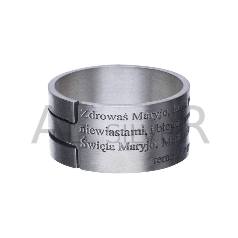OBRĄCZKA RELIGIJNA Z MODLITWĄ "Zdrowaś Maryjo..." , SREBRO 925 OKSYDOWANE, MATOWIONE, ROZMIAR #20 - REGULOWANY.