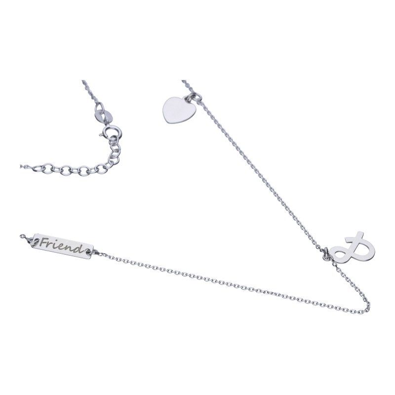 NASZYJNIK SREBRO PRÓBY 925 RODOWANE, DŁUGOŚĆ 42CM+3CM PRZEDŁUŻKA, GŁADKIE SERCE & BLASZKA Z NAPISEM FRIEND.