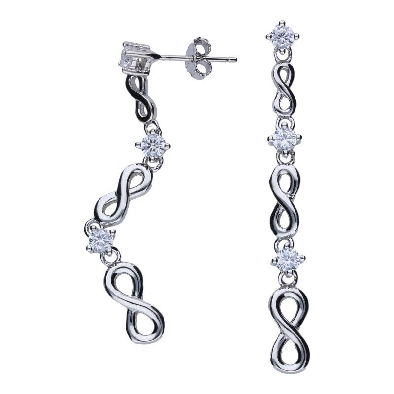 KOLCZYKI NA SZTYFCIE WISZĄCE, DŁUGOŚĆ 4,5CM, SREBRO PRÓBY 925 RODOWANE, BIAŁE CYRKONIE, NIESKOŃCZONOŚĆ. \r\n