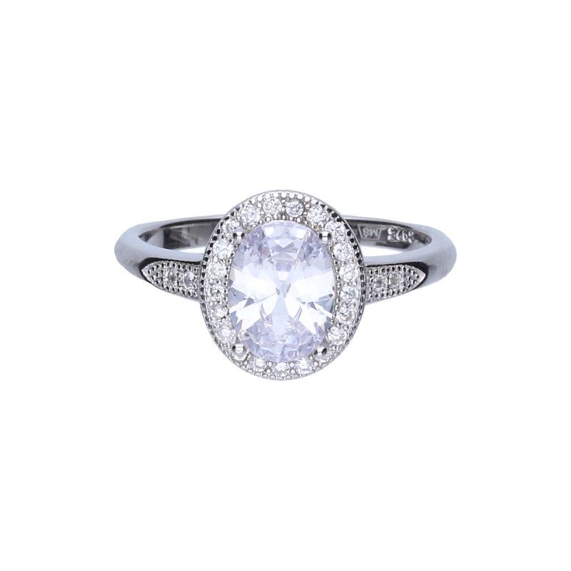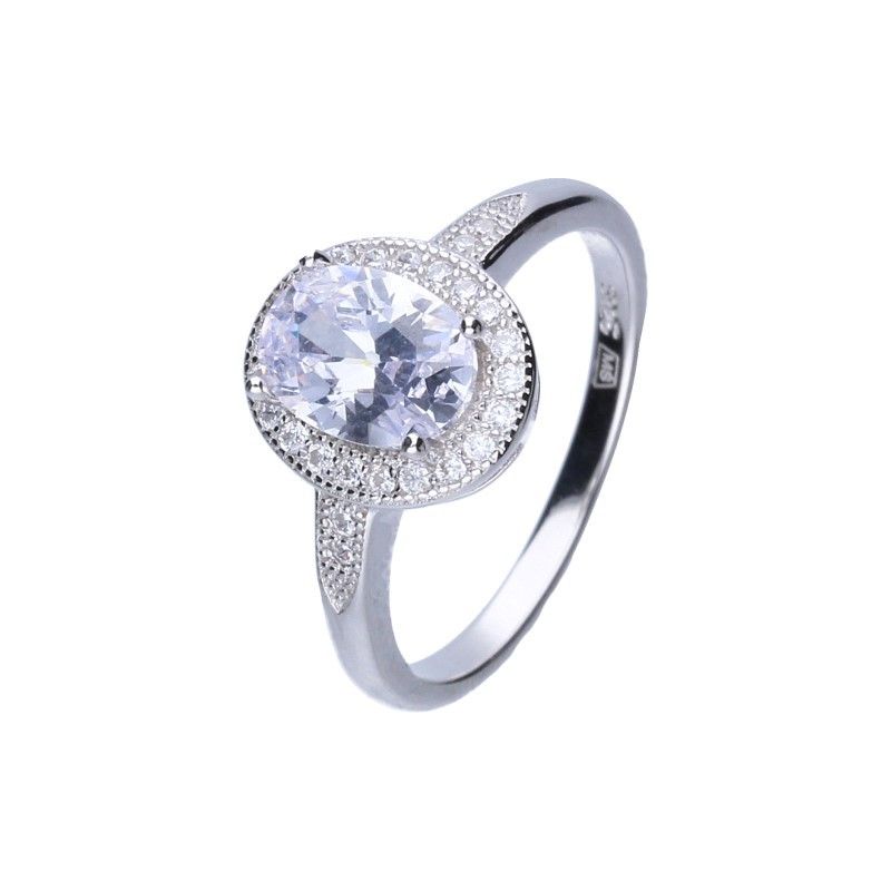 PIERŚCIONEK TYPU MARKIZA, SREBRO PRÓBY 925 RODOWANE, CYRKONIE W KOLORZE BIAŁYM, OWAL, WYMIARY 11mm X 9MM.
