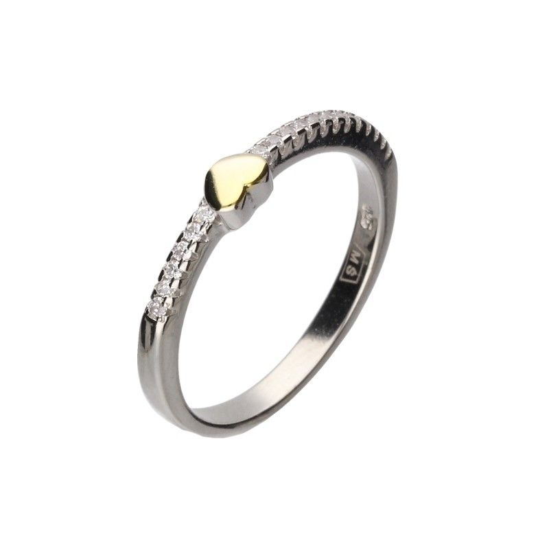 PIERŚCIONEK POŁĄCZENIE SREBRA PRÓBY 925 RODOWANEGO Z POZŁACANYM 24 KARATOWYM ZŁOTEM, BIAŁE CYRKONIE, SERCE O WYMIARACH 3mm X 4mm.