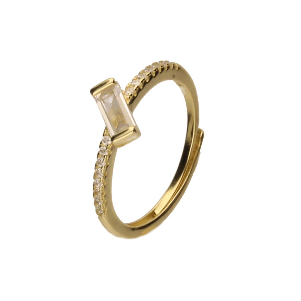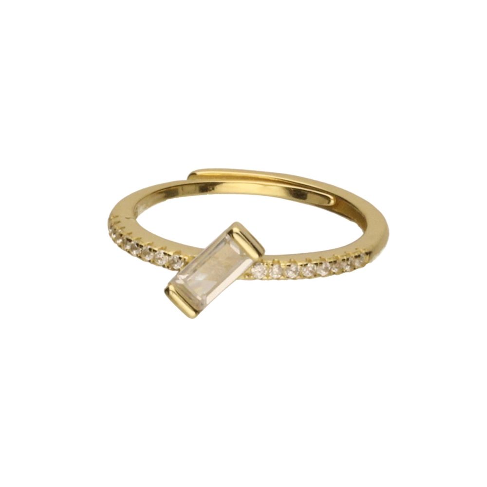 PIERŚCIONEK SREBRO PRÓBY 925 POZŁACANE 24 KARATOWYM ZŁOTEM, BIAŁE CYRKONIE, CYRKONIA TYPU BAGIETKA O WYMIARACH 3mm X 7mm.