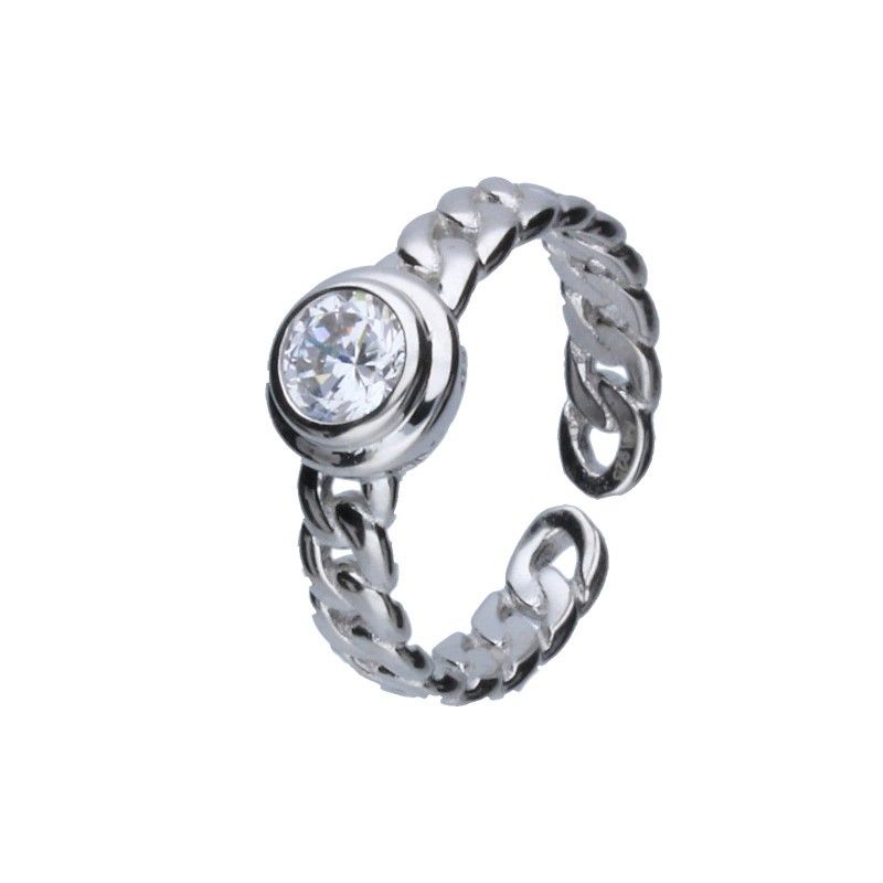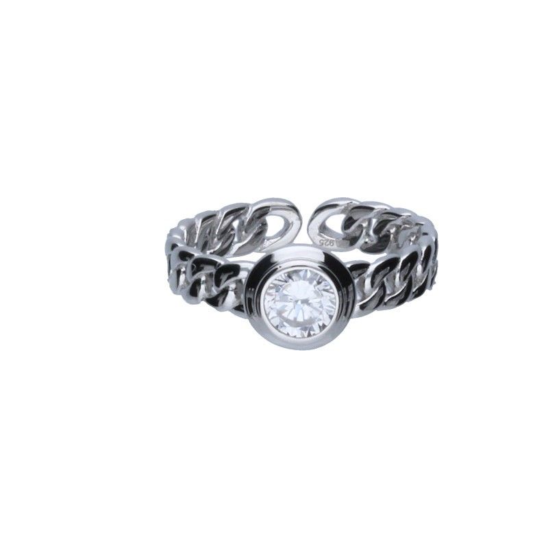 PIERŚCIONEK Z MOŻLIWOŚCIĄ REGULOWANIA, SREBRO PRÓBY 925 RODOWANE, OKRĄGŁA CYRKONIA W KOLORZE BIAŁYM O ŚREDNICY 7mm Z RAMKĄ, PANCERKA.