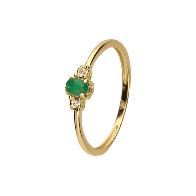 PIERŚCIONEK, SREBRO PRÓBY 925 POZŁACANE 24 KARATOWYM ZŁOTEM, BIAŁE, ZAKUWANE CYRKONIE PLUS CYRKONIA W KOLORZE EMERALD O WYMIARACH 3mm X 4mm.