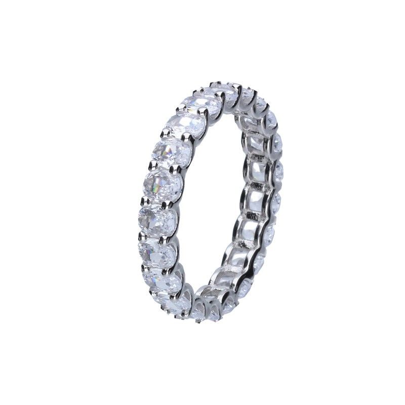 PIERŚCIONEK OBRĄCZKA, SREBRO PRÓBY 925 RODOWANE, OWALNE, ZAKUWANE CYRKONIE W KOLORZE BIAŁYM, SZEROKOŚĆ PIERŚCIONKA 4mm.